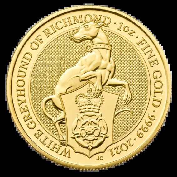 1 Uncja Bestie Królowej Biały Chart z Greyhound Złota Moneta | 2021