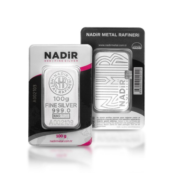 100 g czystego srebra próby 999/1000 wybite z menniczą precyzją przez renomowaną turecką rafinerię Nadir Metal Rafineri to jedna z najpopularniejszych jednostek wśród inwestorów, którzy kierują się korzystnym przelicznikiem ceny za gram srebra, płynnością przy sprzedaży oraz wygodą przechowywania.