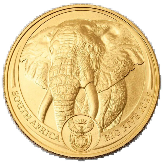 1 oz Wielka Piątka Afryki Słoń Złota Moneta | 2025 – Symbol siły i afrykańskiej dzikości