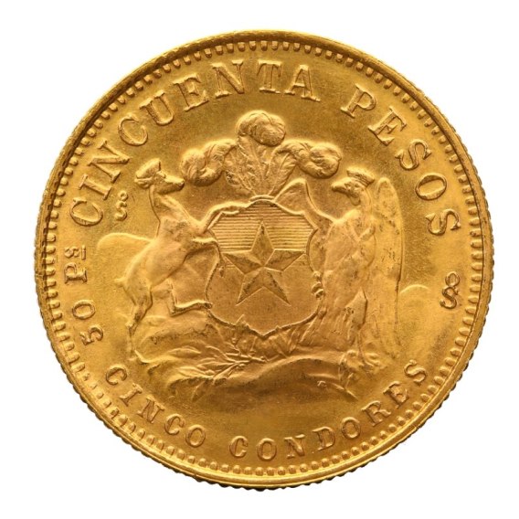 50 Peso Chile Liberty 1926–1980. Historyczna złota moneta z Chile, zawierająca 37,5 g czystego złota próby 900. Symbol wolności i jedna z największych monet bulionowych Ameryki Łacińskiej.